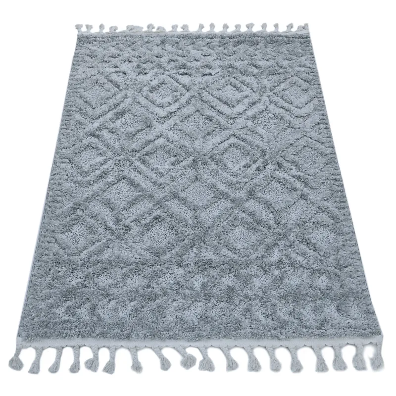 Szary dywan dwupoziomowy w stylu berberyjskim to designerski dodatek do wnętrza, który dodaje elegancji i charakteru do przestrzeni. Ma unikalną konstrukcję, składającą się z dwóch poziomów, które nadają mu trójwymiarowy efekt. Jest wykonany z miękkiego i gęstego włókna, które zapewnia przyjemne wrażenie pod stopami. Jest to idealne rozwiązanie dla osób ceniących wygodę i miękkość w swoim otoczeniu.