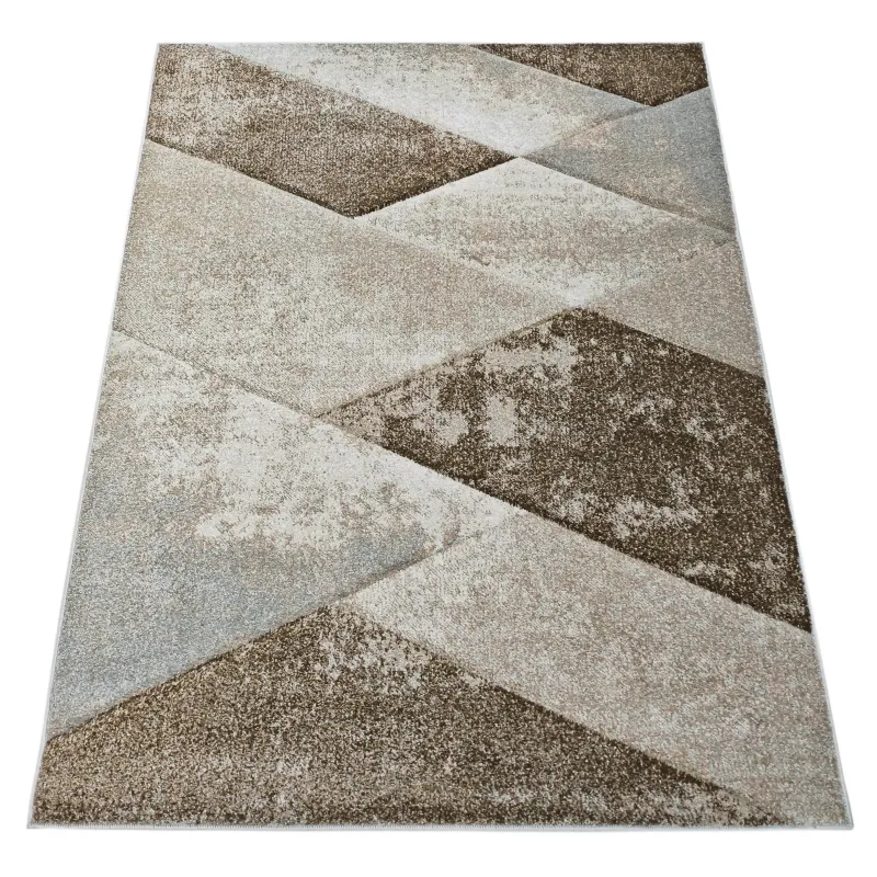 Dywan geometryczny z polipropylenu to wyjątkowy dodatek do każdego wnętrza, który łączy w sobie nowoczesny design i funkcjonalność. Charakteryzuje się wycinanym geometrycznym wzorem, który nadaje mu unikalny i dynamiczny wygląd. Dywan wykonany jest z polipropylenu, co zapewnia mu trwałość oraz łatwość w utrzymaniu czystości. Jego gęstość i grubość sprawiają, że jest wyjątkowo miękki i przyjemny w dotyku, a jednocześnie odporny na intensywne użytkowanie. Kolorystyka dywanu obejmuje eleganckie odcienie beżu i brązu, które doskonale komponują się z różnymi stylami wnętrz, dodając im wyrafinowanego charakteru. Idealny do salonu, sypialni czy biura, dywan ten stanowi harmonijne połączenie estetyki i praktyczności, wnosząc do przestrzeni wyjątkowy akcent dekoracyjny.