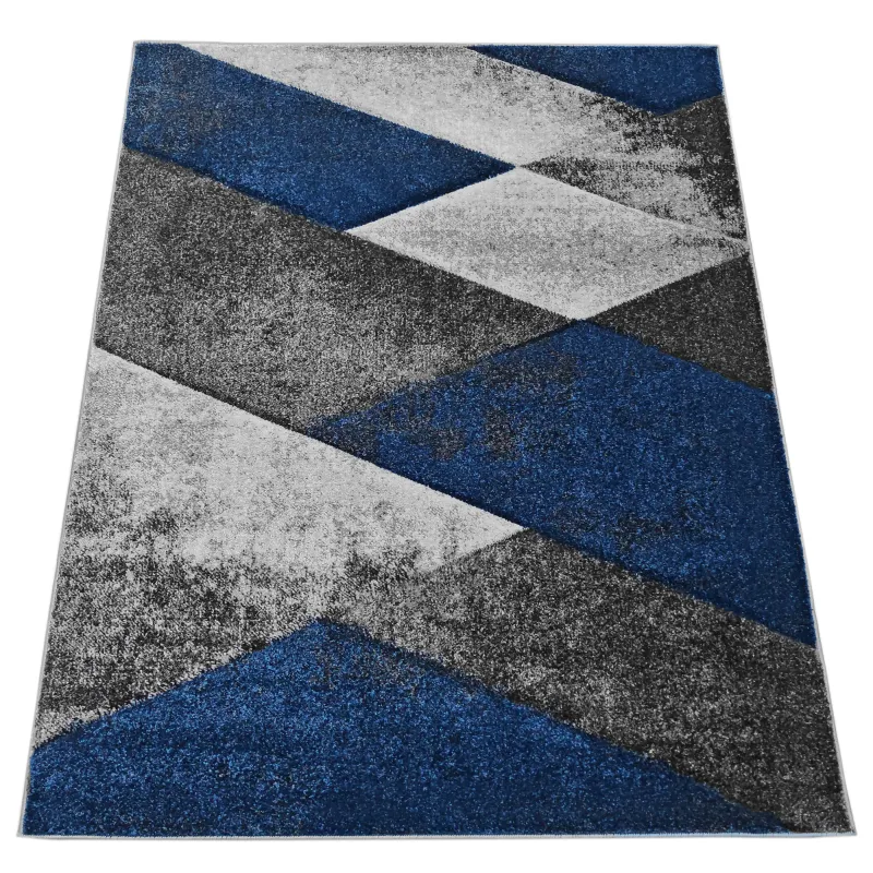 Dywan geometryczny z polipropylenu to wyjątkowy dodatek do każdego wnętrza, który łączy w sobie nowoczesny design i funkcjonalność. Charakteryzuje się wycinanym geometrycznym wzorem, który nadaje mu unikalny i dynamiczny wygląd. Dywan wykonany jest z polipropylenu, co zapewnia mu trwałość oraz łatwość w utrzymaniu czystości. Jego gęstość i grubość sprawiają, że jest wyjątkowo miękki i przyjemny w dotyku, a jednocześnie odporny na intensywne użytkowanie. Kolorystyka dywanu obejmuje eleganckie odcienie szarości i granatu, które doskonale komponują się z różnymi stylami wnętrz, dodając im wyrafinowanego charakteru. Idealny do salonu, sypialni czy biura, dywan ten stanowi harmonijne połączenie estetyki i praktyczności, wnosząc do przestrzeni wyjątkowy akcent dekoracyjny.