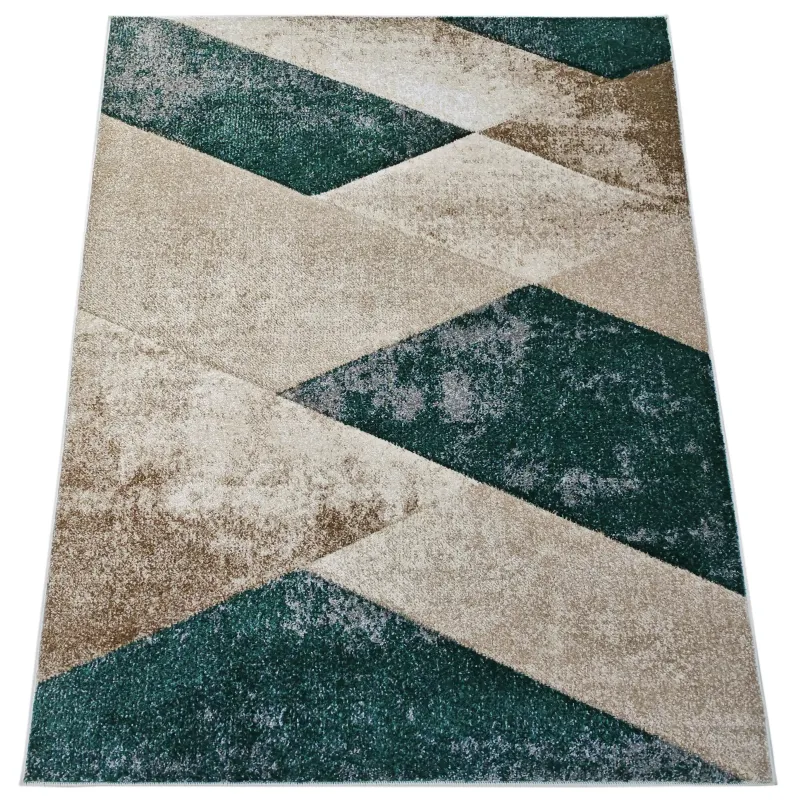 Dywan geometryczny z polipropylenu to wyjątkowy dodatek do każdego wnętrza, który łączy w sobie nowoczesny design i funkcjonalność. Charakteryzuje się wycinanym geometrycznym wzorem, który nadaje mu unikalny i dynamiczny wygląd. Dywan wykonany jest z polipropylenu, co zapewnia mu trwałość oraz łatwość w utrzymaniu czystości. Jego gęstość i grubość sprawiają, że jest wyjątkowo miękki i przyjemny w dotyku, a jednocześnie odporny na intensywne użytkowanie. Kolorystyka dywanu obejmuje eleganckie odcienie zieleni oraz beżu, które doskonale komponują się z różnymi stylami wnętrz, dodając im wyrafinowanego charakteru. Idealny do salonu, sypialni czy biura, dywan ten stanowi harmonijne połączenie estetyki i praktyczności, wnosząc do przestrzeni wyjątkowy akcent dekoracyjny.