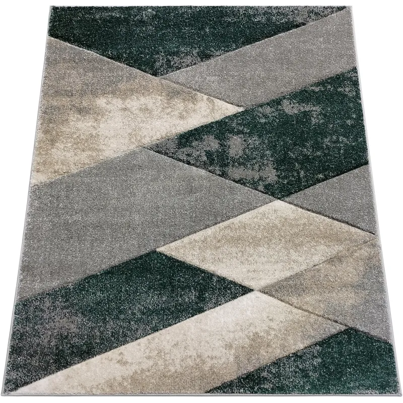 Dywan geometryczny zielony + szary + beżowy